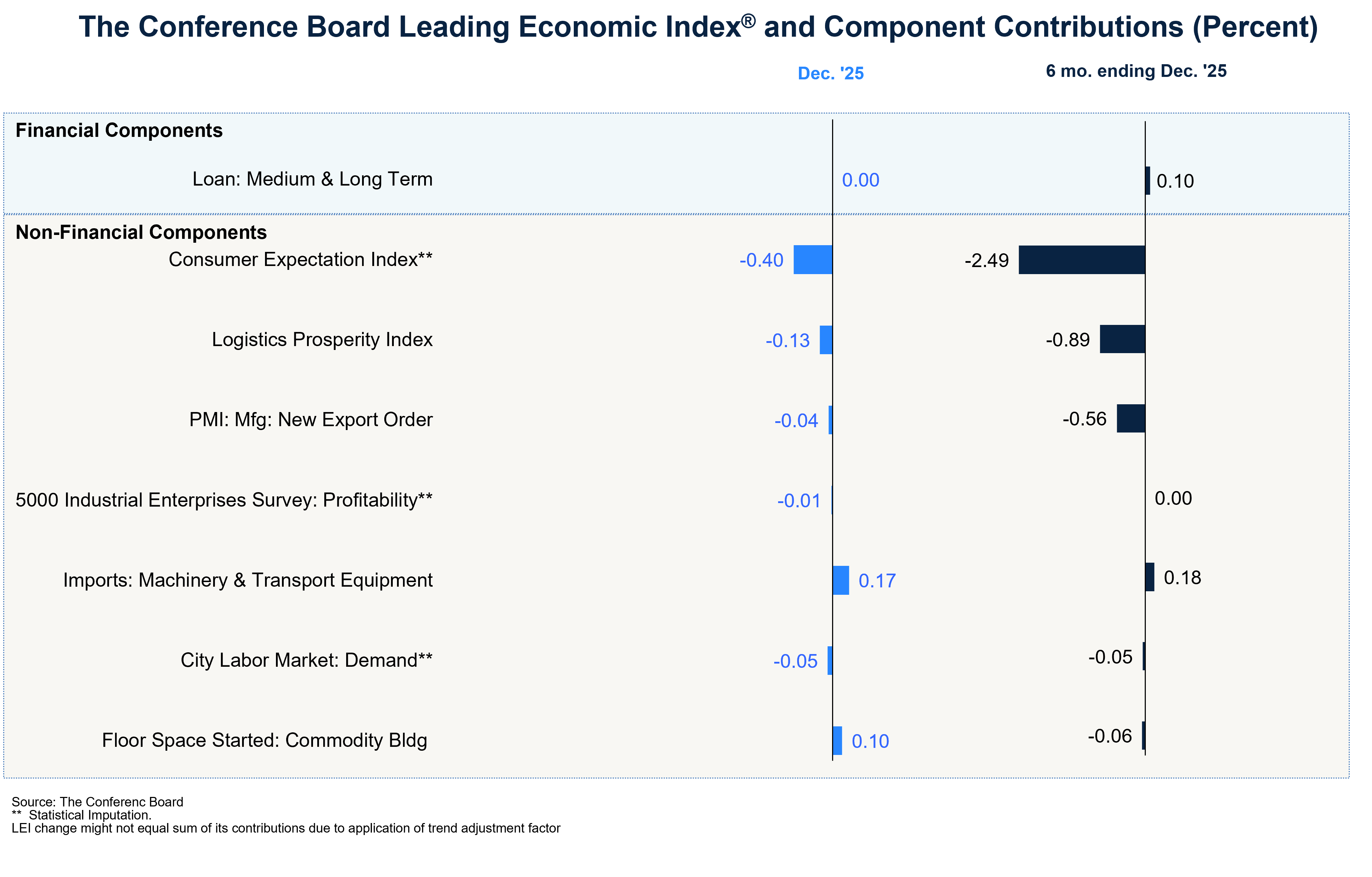 “The China LEI declined on a month-on-month and six-month basis in December, continuing its downward trend,” said Timothy Brennan, Economic Research Associate, at The Conference Board. “Consumer confidence continued to be the primary drag on the index, while the logistics prosperity index also recorded a notable negative contribution. Meanwhile, growth in imports and transportation equipment and building construction bolstered the index, but not enough to offset widespread weakness in all remaining components.