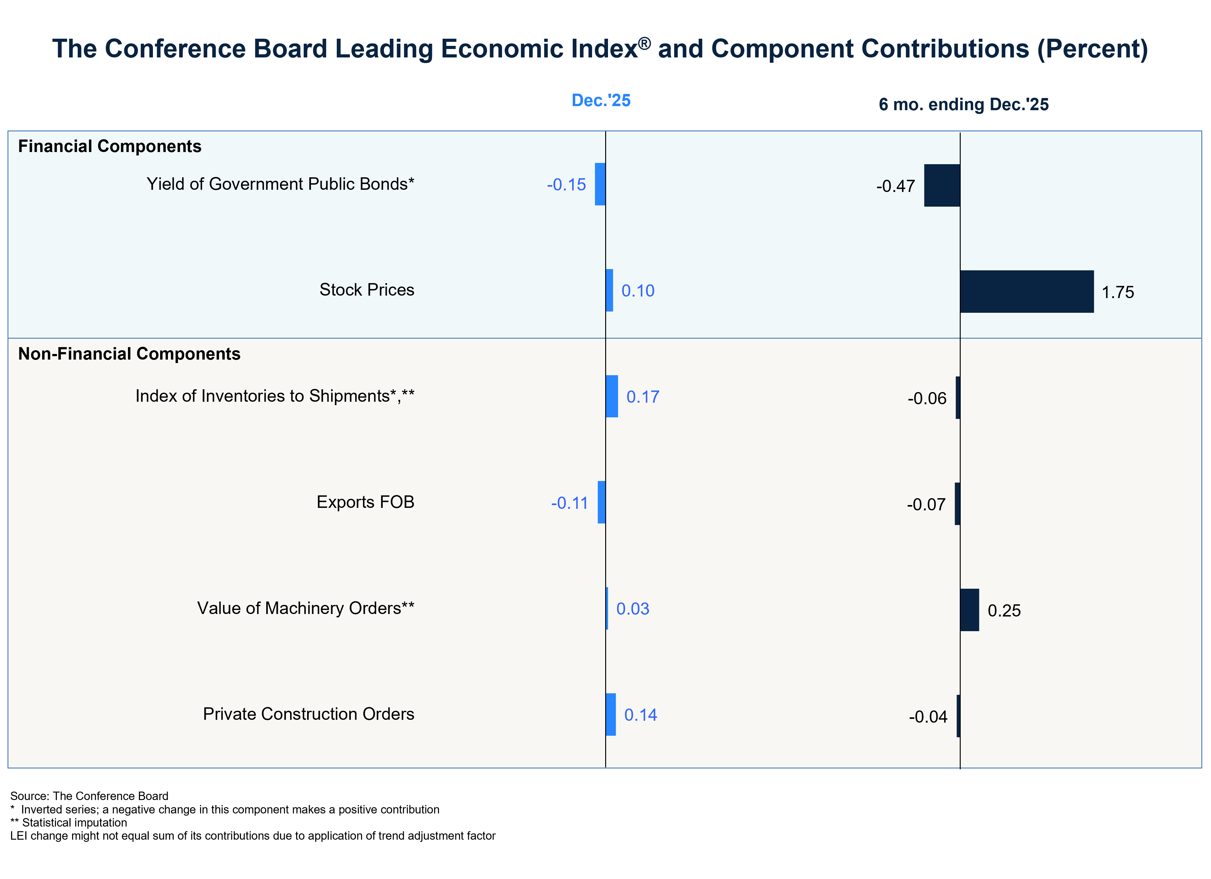 The Conference Board Leading Economic Index® (LEI) for South Korea increased by 0.3% to 113.5 (2016=100) in December 2025, after increasing by 0.4% in November. The LEI expanded by 1.9% over the second half of 2025, an unchanged growth rate from the first half of 2025.