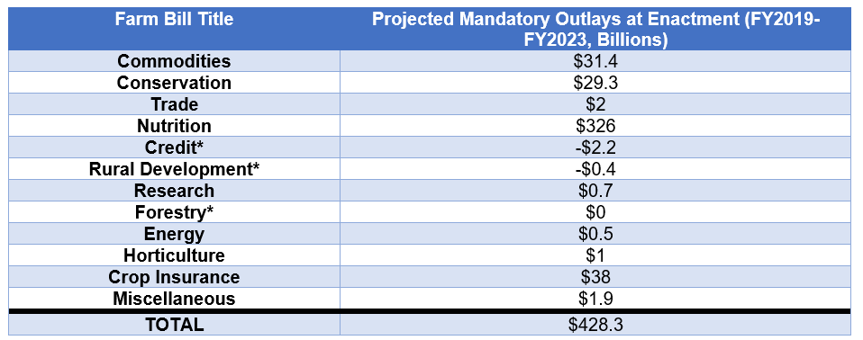 Figure 1: 2018 Farm Bill Total Projected Mandatory Outlays at Enactment (FY2019 – FY2023)